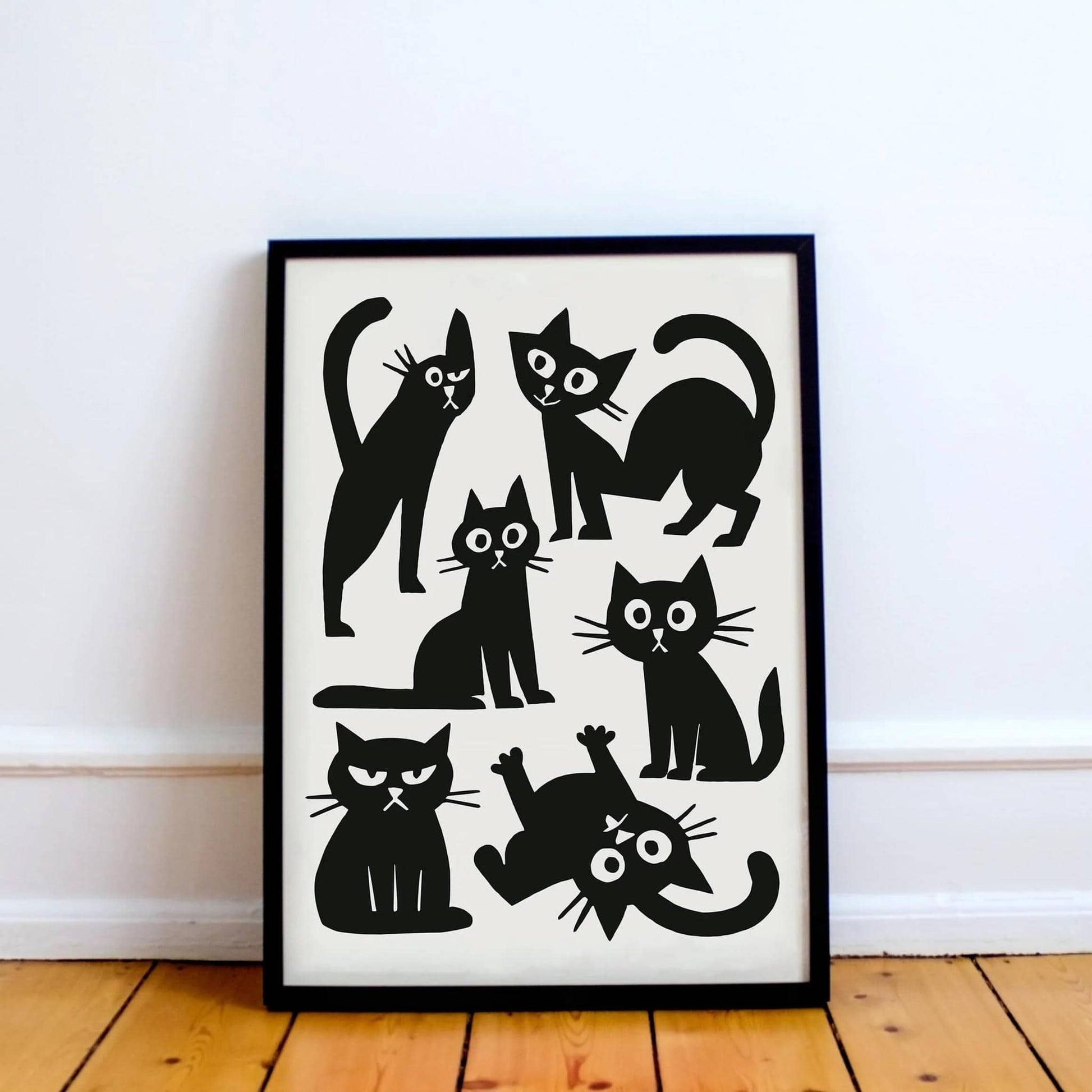 Black & White Funny Cats Print – Modern Wall Decor
