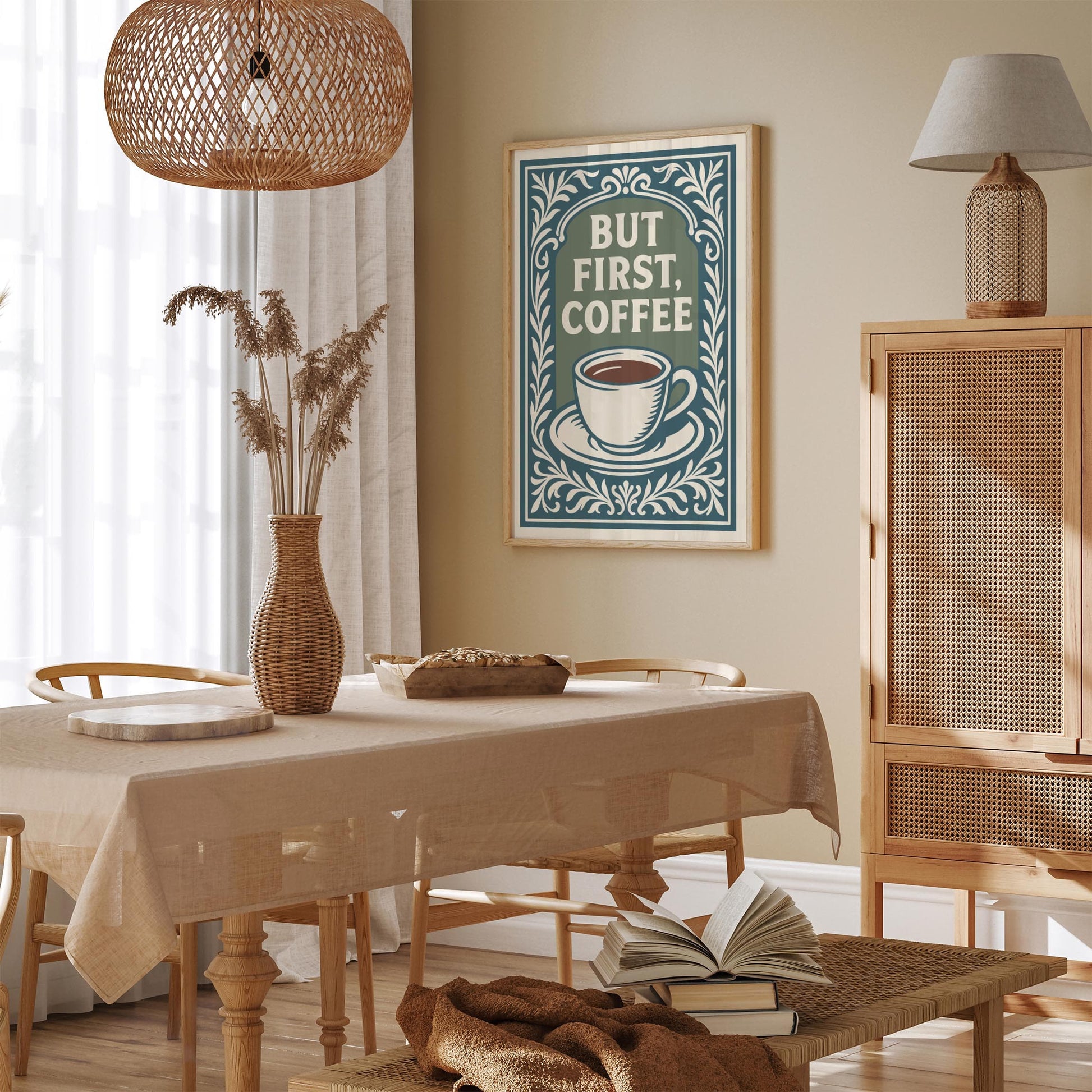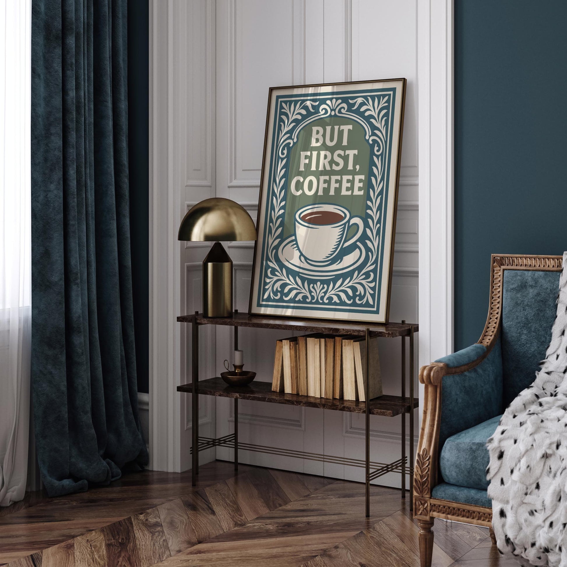 But First Coffee Poster - Quote Rococo Style Kitchen Wall Art Decor