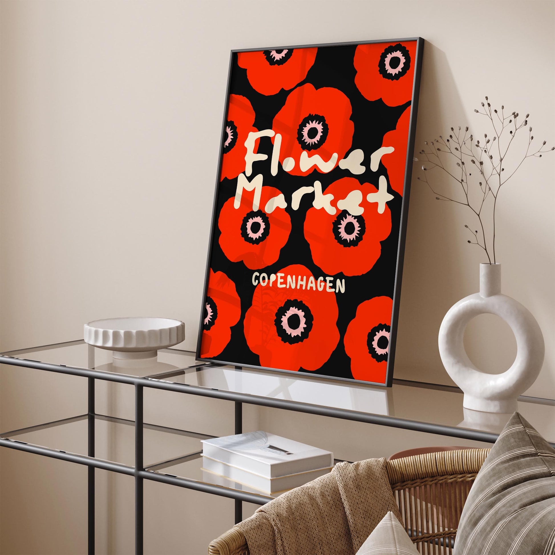 Flower Market Copenhagen Poster - Red Poppy Flowers Art Print