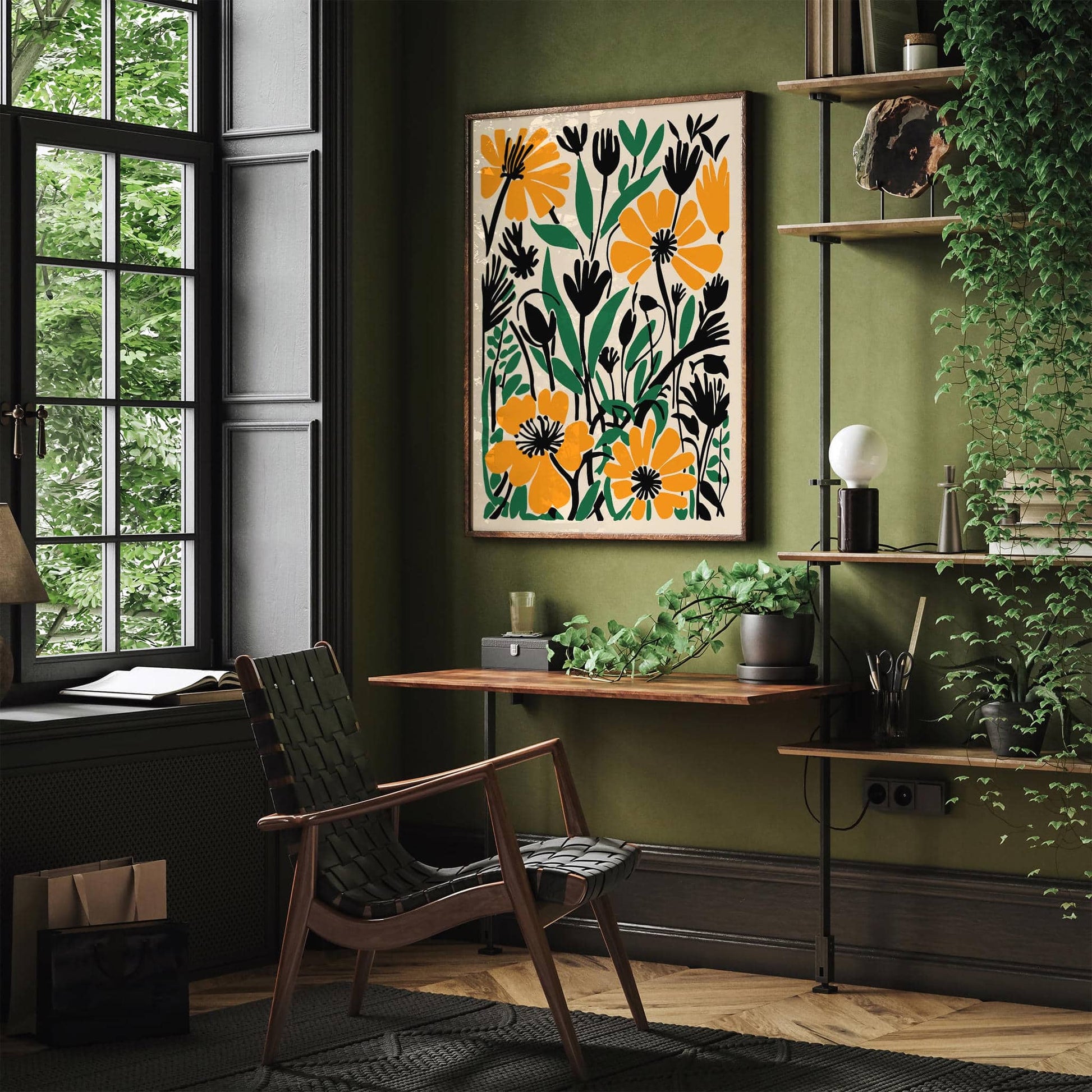 Green and Yellow Botanical Meadow Floral Poster