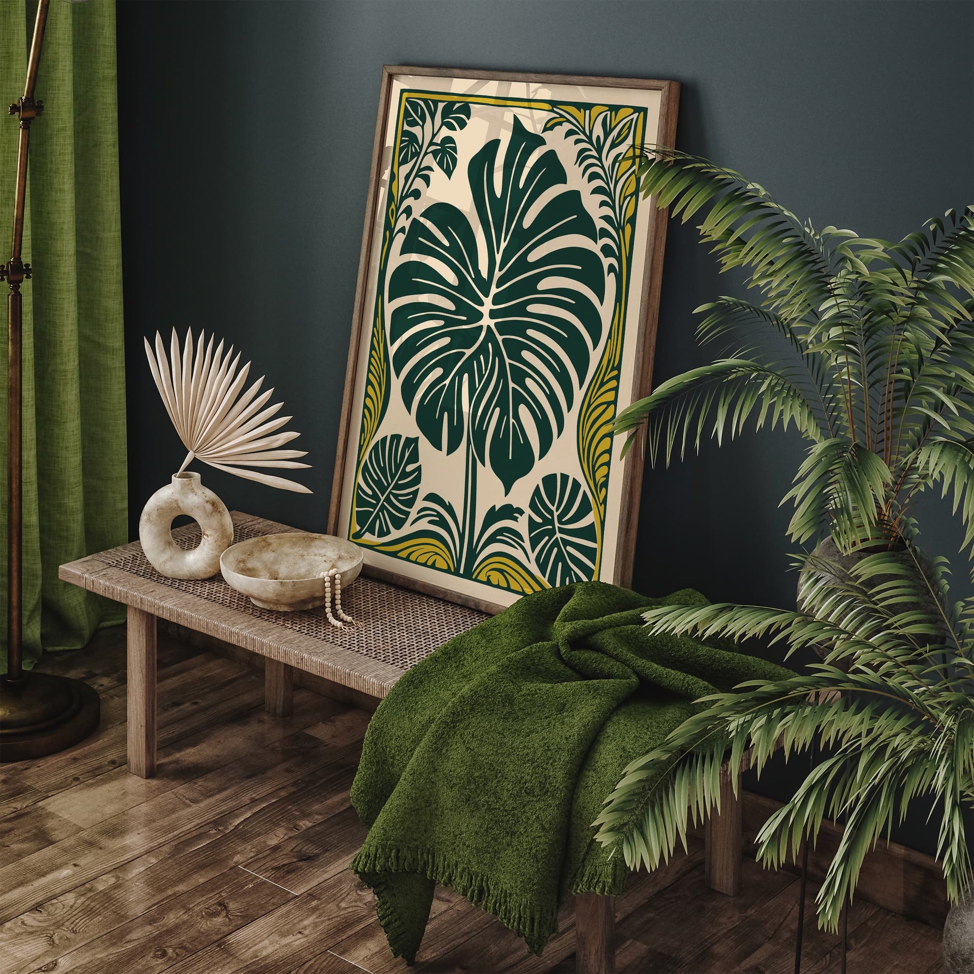 Green Big Rococo Monstera Leaf Poster
