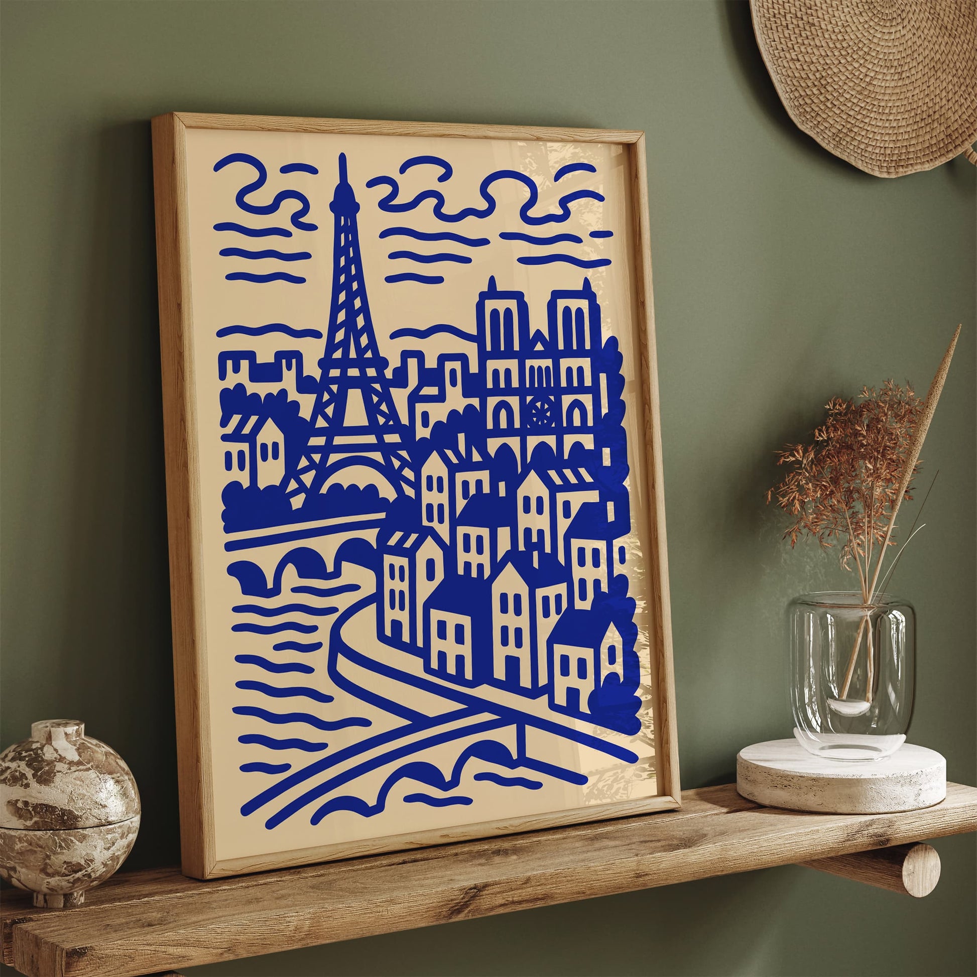 Modern Line Art Paris Cityscape Blue Poster