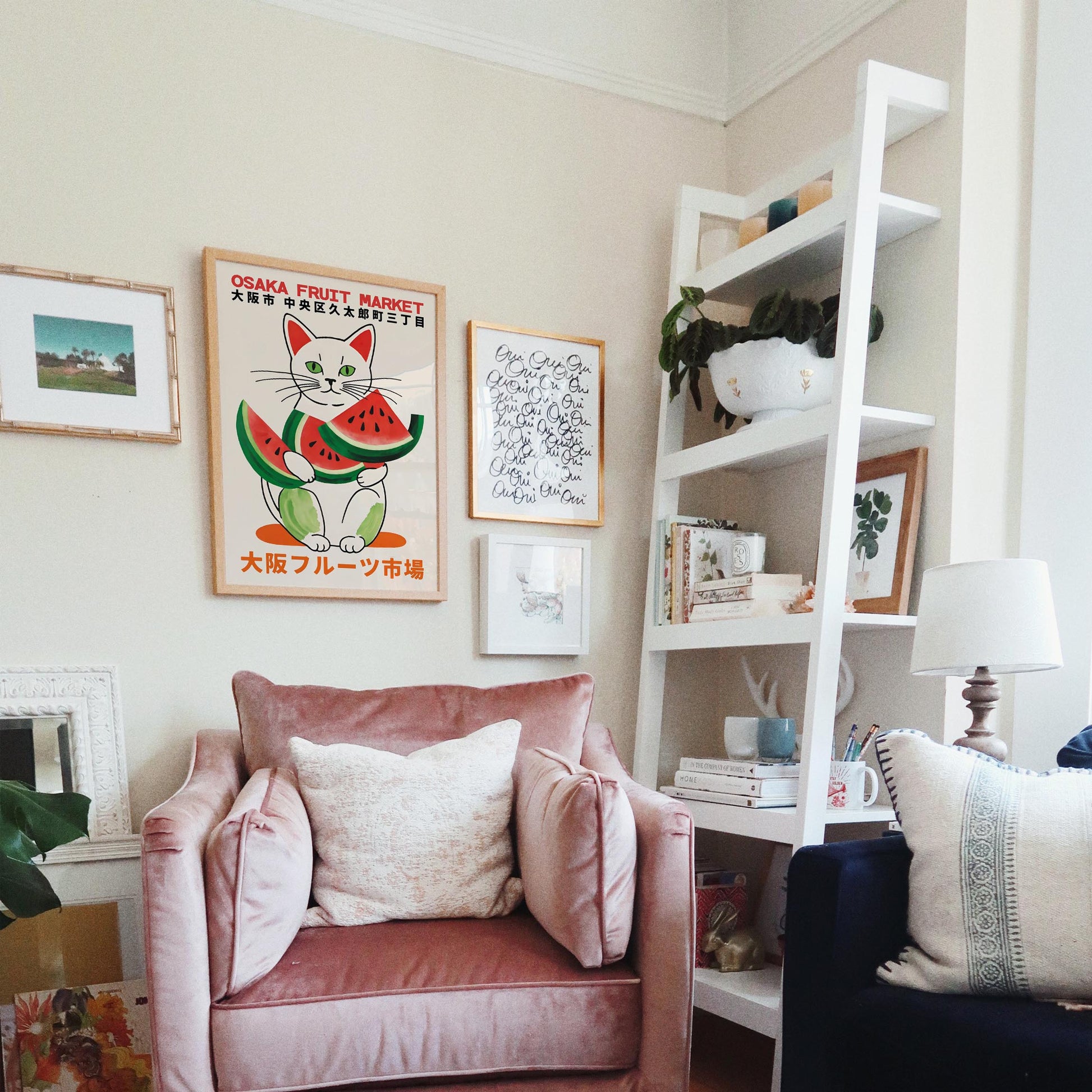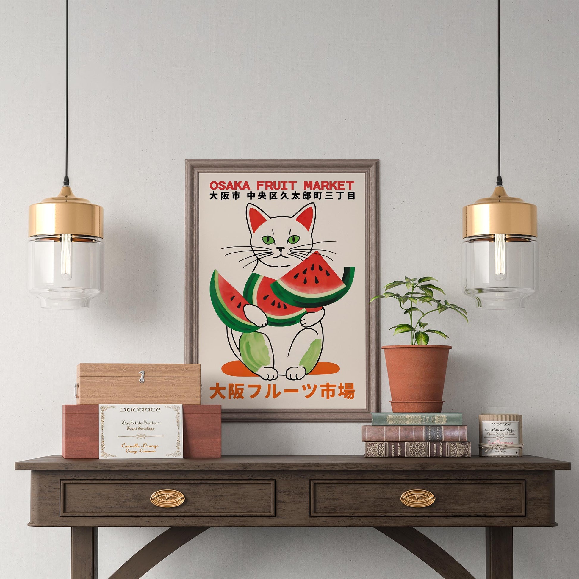 Osaka Fruit Market Cat Poster Print