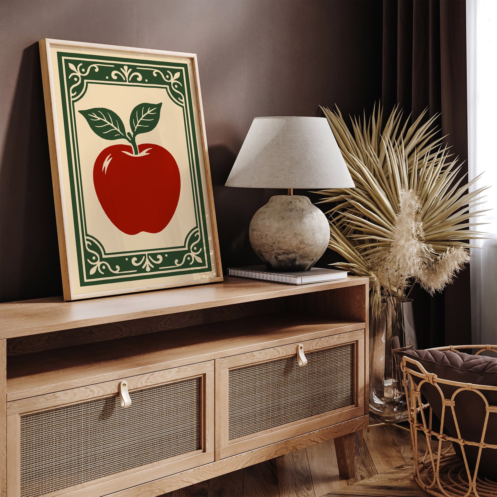 Red Apple Poster - Rococo Style Kitchen Wall Decor
