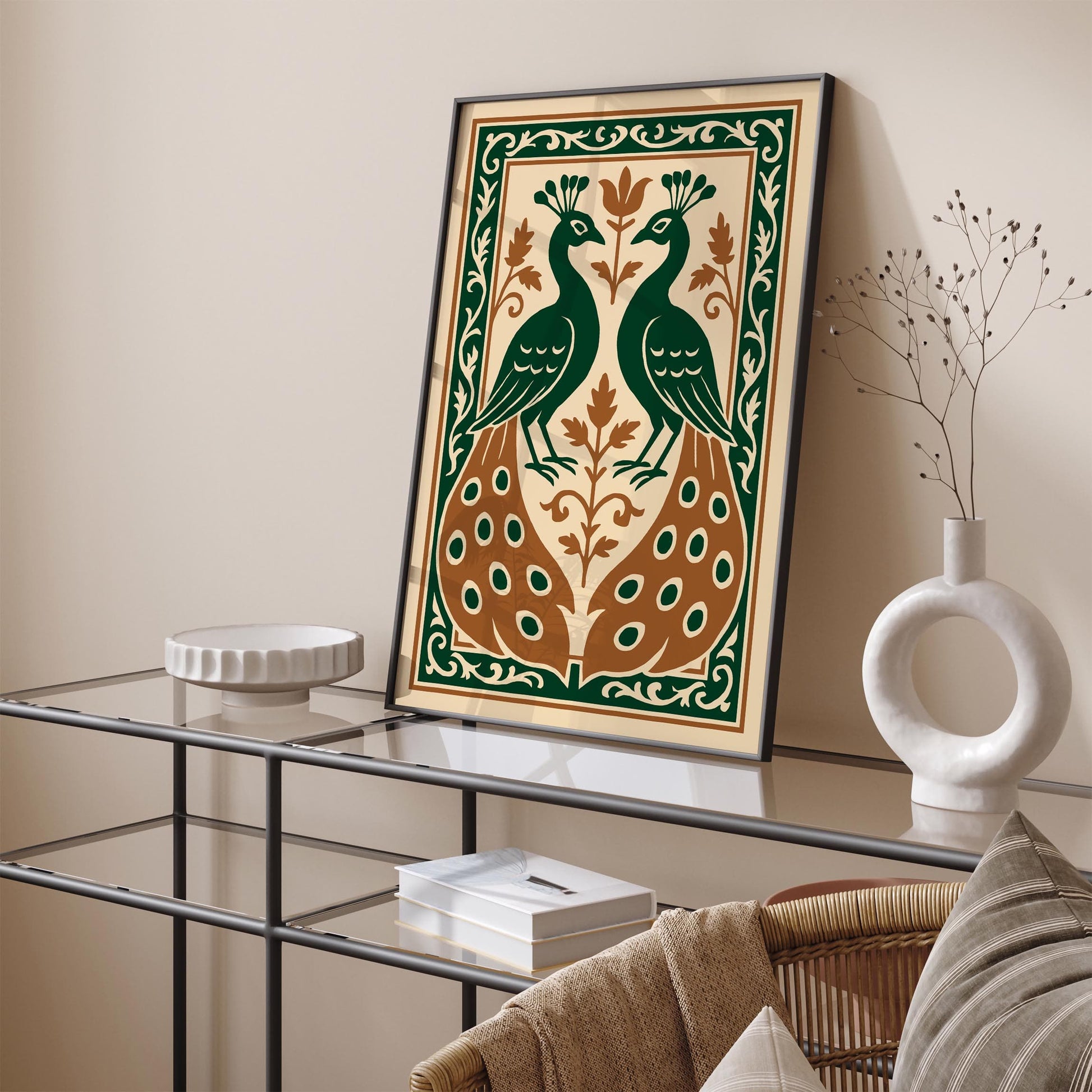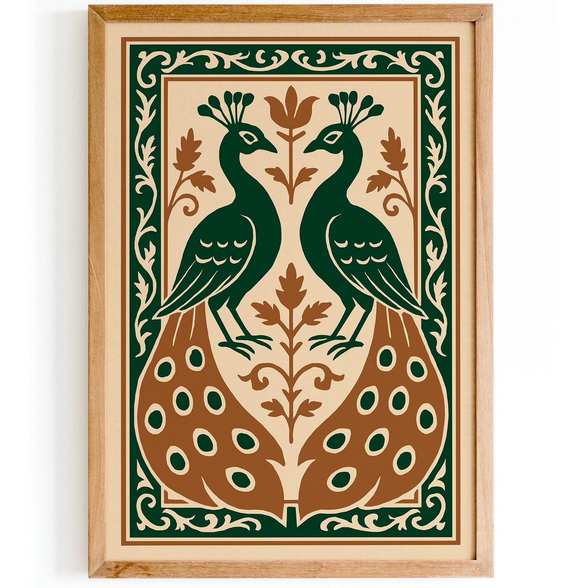 Enhance your space with this Vintage Art Nouveau Peacock Print, showcasing a striking symmetrical design and ornate elegance. Our posters are giclée-printed on premium 190gsm, acid-free paper for sharp, high-quality images and super vibrant colors.